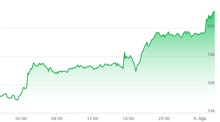 BTC fiyatı gün içinde yaklaşık %10 artmıştı ve son sıçramanın bu yükseliş eğiliminin devamı olduğu düşünülüyor. Ani fiyat artışının nedeni henüz açıklığa kavuşmamış olsa da, kripto analisti il Capo, piyasanın güçlü bir sıçrama yaptığını ve 60.000 doların üzerinde kalıcı bir hareketin gerekli olduğunu belirtti.